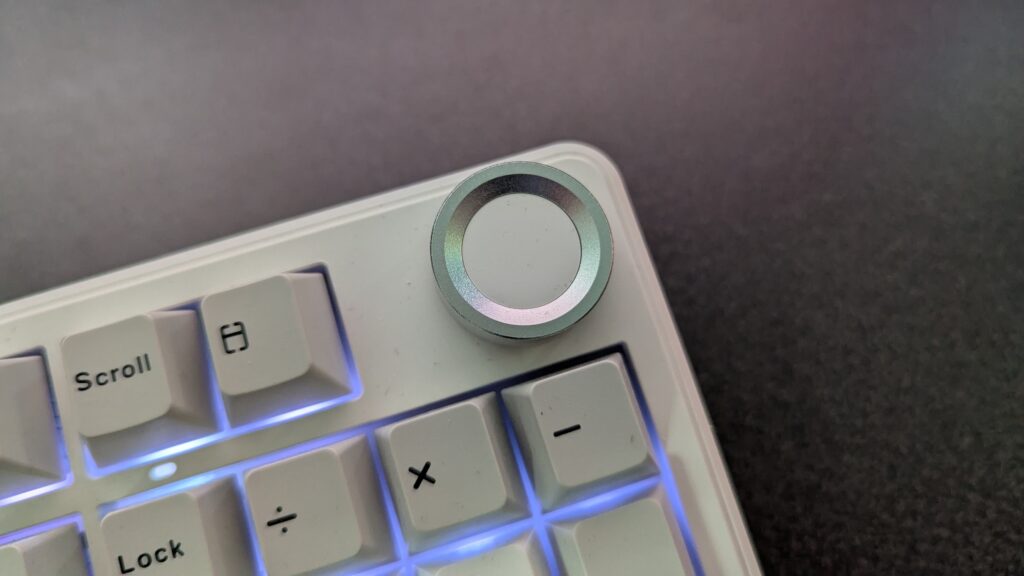 So, the F99 Pro is a slight rework from the popular F99, with the inclusion of a rotary knob in the top right-hand side and one extra key which can be bound to what you like. It’s called a 96% layout. Why AULA didn’t call it the F96 for ease I am unsure. They missed a trick there I think. But as I said it does have the inclusion of a numberpad on the right, which will be loved I bet by you Excel lovers out there, but maybe not so much aimed at the hardcore gaming audience. I do however stand by having a numberpad to make switching between scenes on OBS a lot easier.