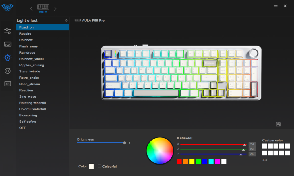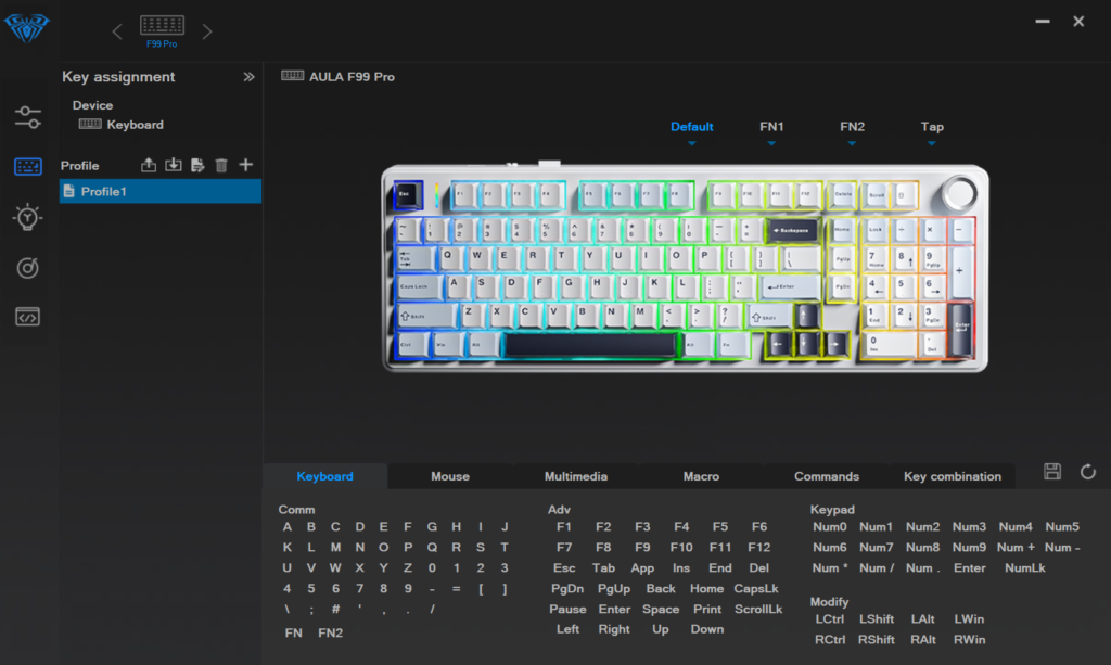 There is a simple driver which can be downloaded from the AULA website for the F99 which gives you control over things like your RGB effects, recording macros and also keystroke functions too. It’s not very difficult to use and is laid out rather well. RGB looks nice though there’s no shine through on the keycaps which makes it difficult to read under less than ideal lighting conditions.