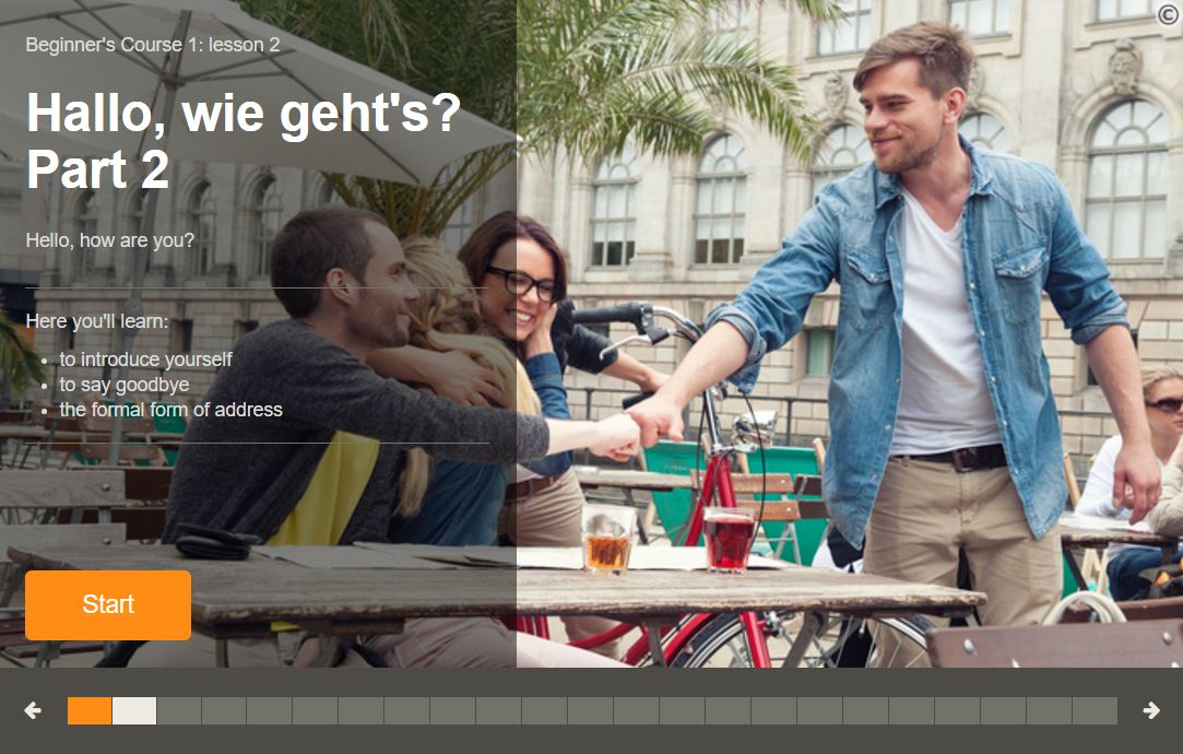 So content is laid out into various groups. These start with beginner courses all the way through to intermediate and grammar teachings. It’s a great way to introduce even the most inexperienced person to be able to start learning. The beginner courses which I’m working through now are very basic phrases to learn such as ‘hello’, ‘how are you?’, ‘I’m fine thankyou’ and ‘Are you Mr Doe?’.