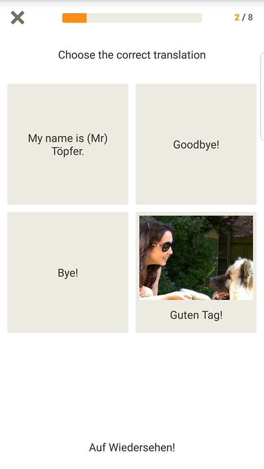 During the courses you get the chance to either type or use voice recognition software that your mobile phone has to answer and repeat the phrases or words you are learning. I opt for typing, as my experience with voice recognition has been awful. Whether I have terrible pronunciation or what I’m not sure, but I can never get the app to recognise what I am saying in a foreign language. This needs some attention from the app developers I feel to give some leeway to those learning to pronounce the particular words.