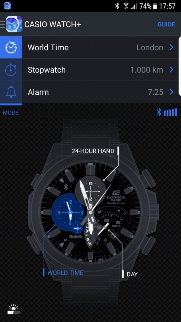 The app can be used for a number of tasks. Some that you would associate with a watch like this like setting the time, or even up to four alarms. You can choose to display your local or selected city time using the main hands, and when you click the button, you can watch the hands shuffle into place to display the most accurate time at that particular city.