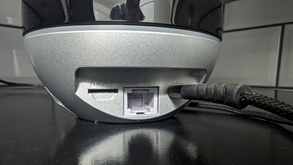 The EZVIZ E6 has a somewhat fragile build quality. The camera has pretty much a plastic shell, to keep the weight down of course, but I would make sure this thing is secure if you’re going to be mounting it. I’m not sure it’ll survive a drop from a distance, especially if you’ve got hard floors without at least cracking the outer shell. Around the back, you’ve got three ports, USB Type-C for power, a microSD card slot to save your footage and finally an Ethernet port, so you can connect this camera to your wired network in your house. It does support both 2.4GHz and 5GHz bandwidths though if you wanted to go the wireless route. Being wireless also makes it easy for users in rented accommodation to hook it up to their existing gear, and then take it with them when they move. The design is also sleek enough to fade into the background of your room. It looks nice and modern, and it won’t stand out to anyone visiting the home or look out of place.