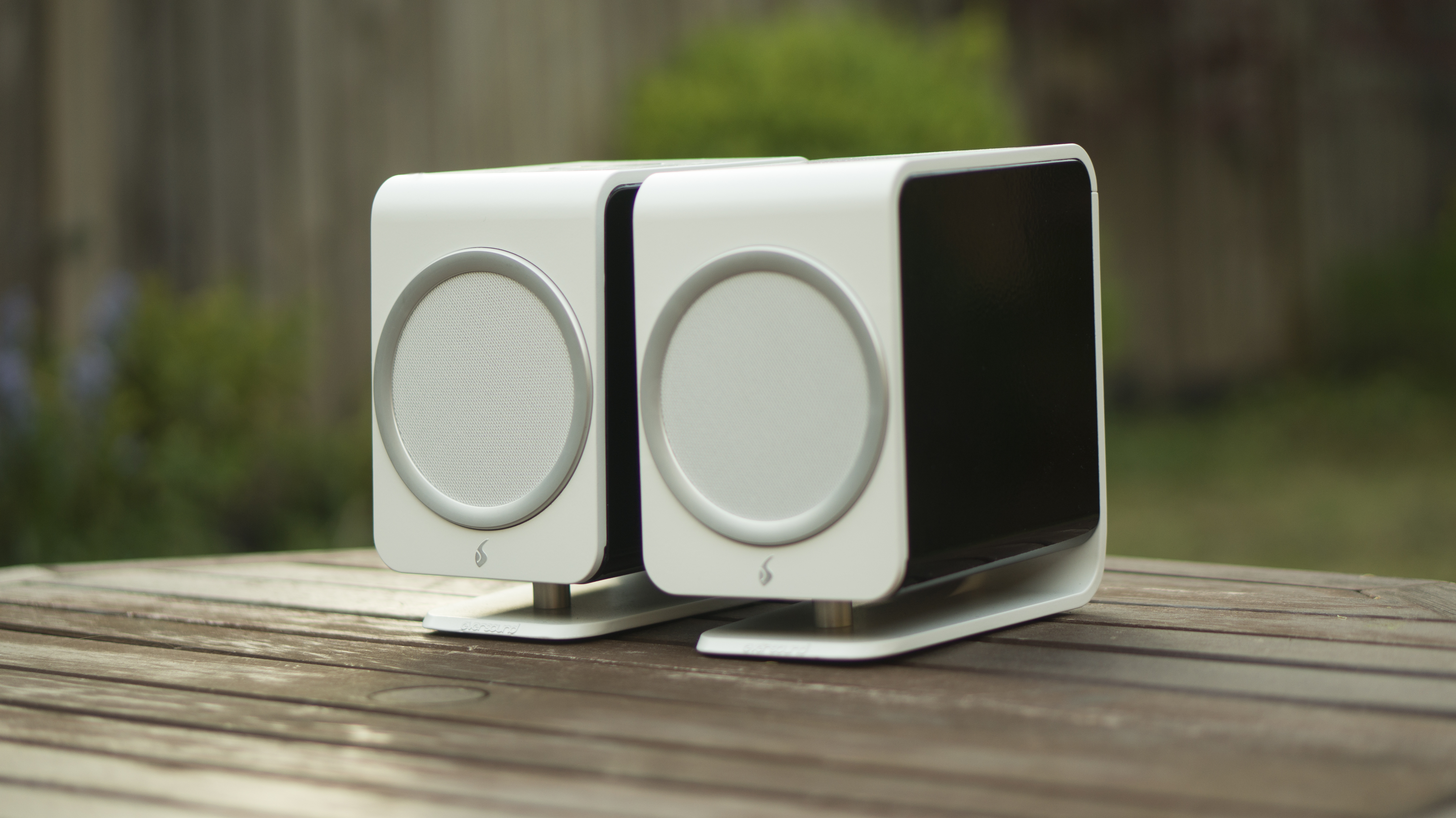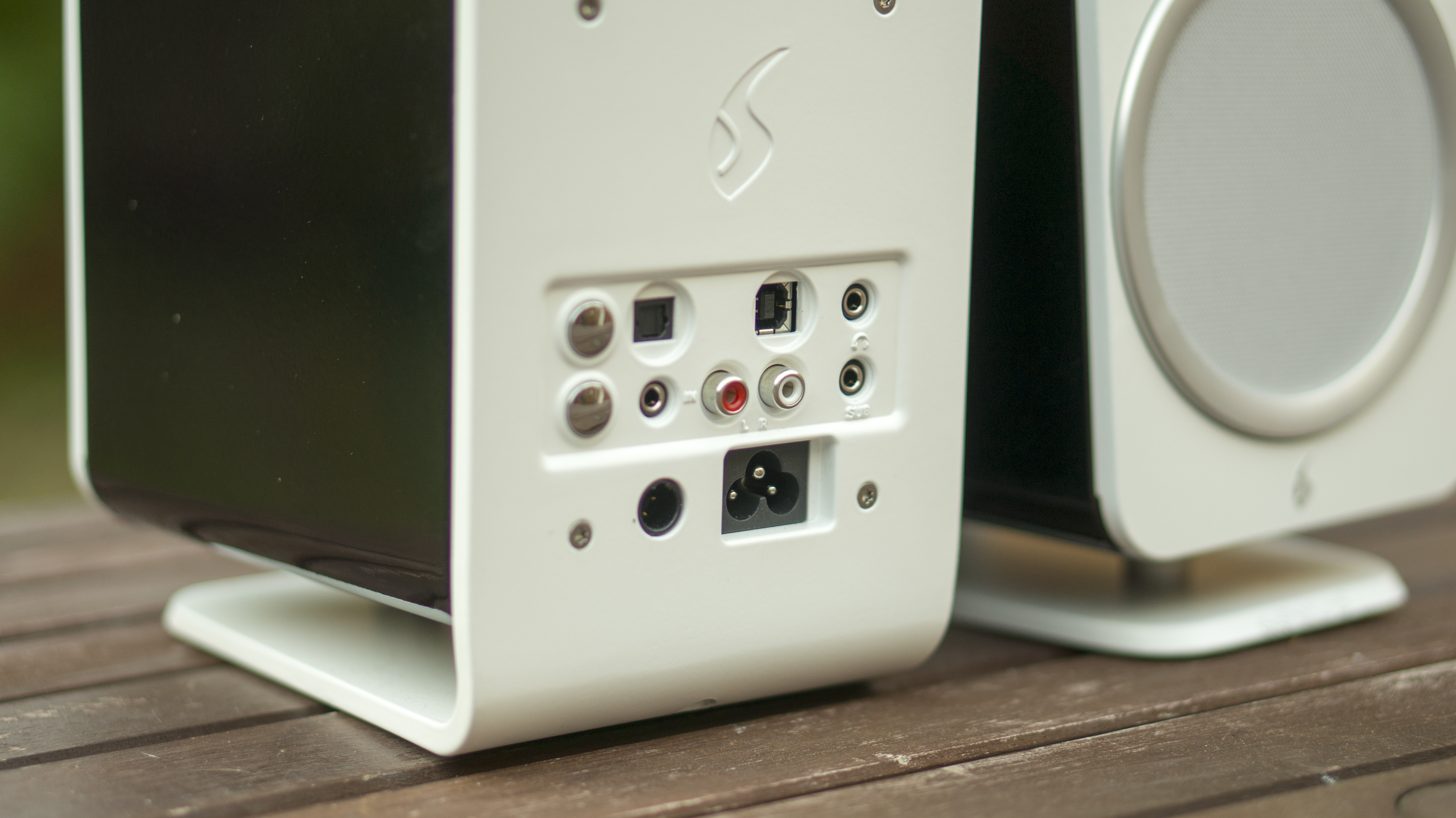 All the ports are on the rear of the right hand speaker, offering a mixture of analogue and digital inputs which is absolutely fantastic as it allows you to use a set of turntables for uninterrupted analogue goodness. Inputs include: an 3.5mm auxilery input, USB type-B to connect it to a computer and a TOSLINK-optical input for digital connections from televisions. The button on top switches between the different inputs available. The Essence set is active, with a 24bit 96kHz USB and TOSLINK DAC processing audio inside the speaker to guarantee the best quality for the digital pass.