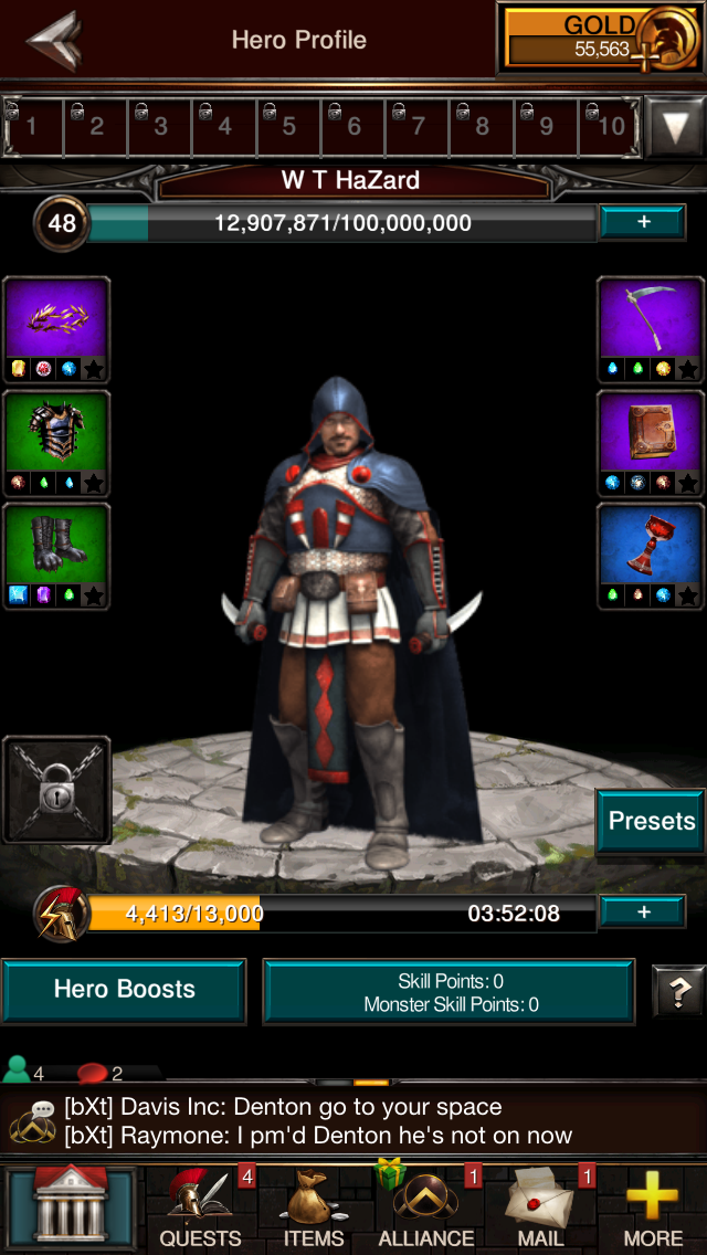 You also start off with your very own hero at level 1. Your hero can increase to level 50 over time. Experience is given for fighting players and monsters, constructing buildings and researching. You can craft or find treasure items that you can equip to your hero like swords and armor. These also come in different rarities. When your hero levels up, you can allocated points to different attributes to give bonuses. Be warned, at level 15 your hero can be executed if captured. This hasn’t happened to me yet but I know you have to resurrect your hero, which can’t be good. As a player, you can also get VIP points by logging in each day, which give additional rewards.