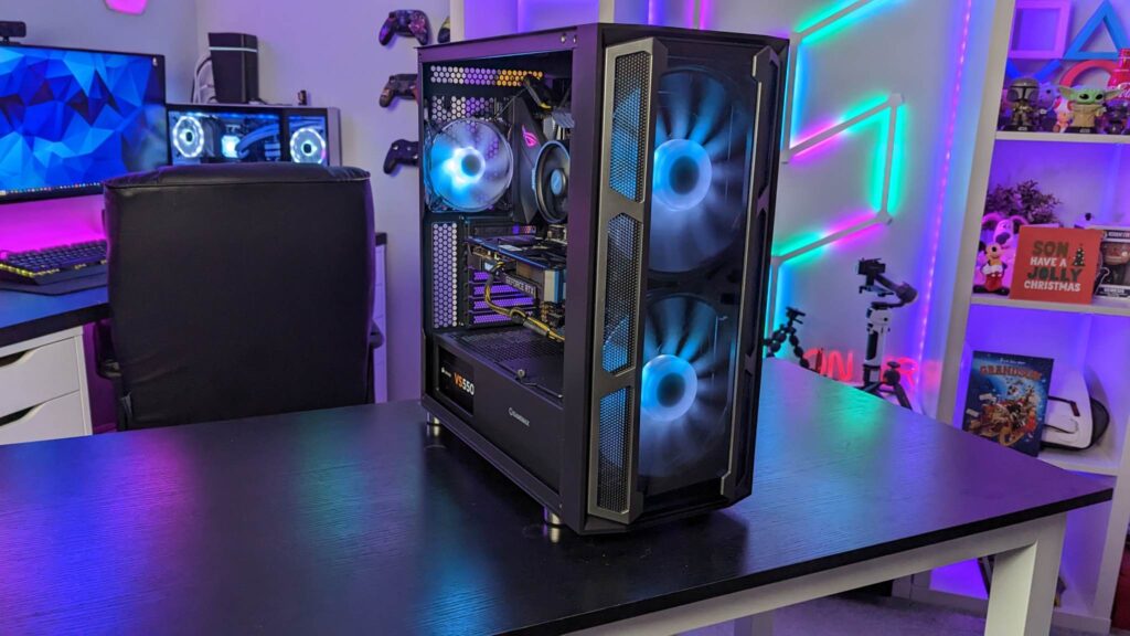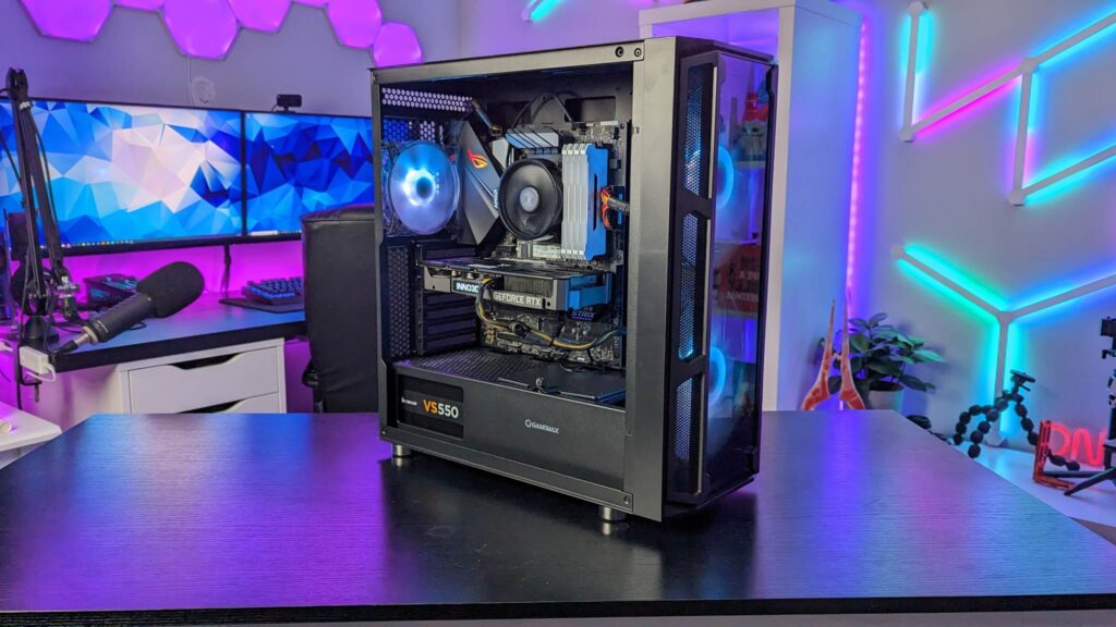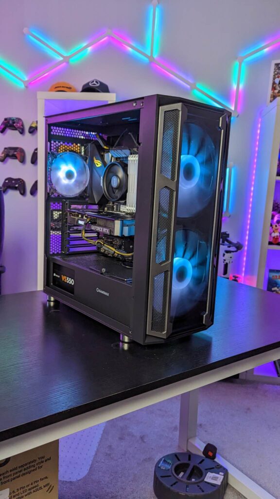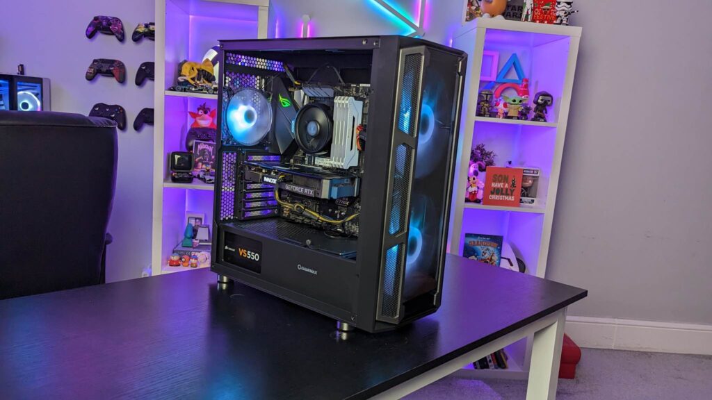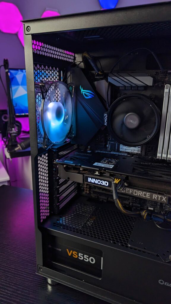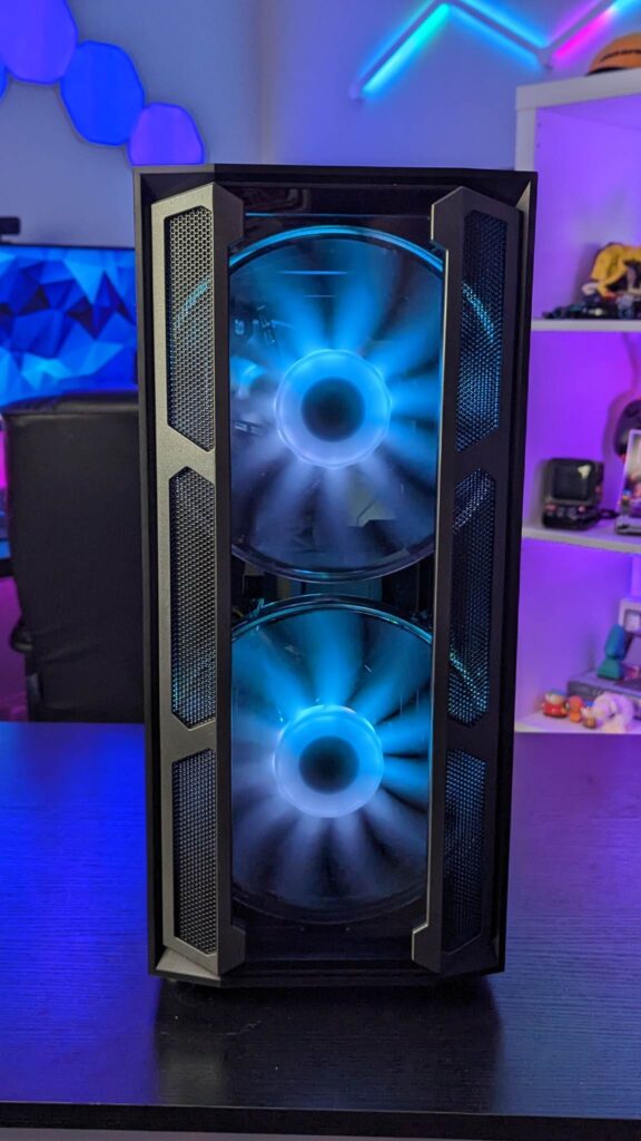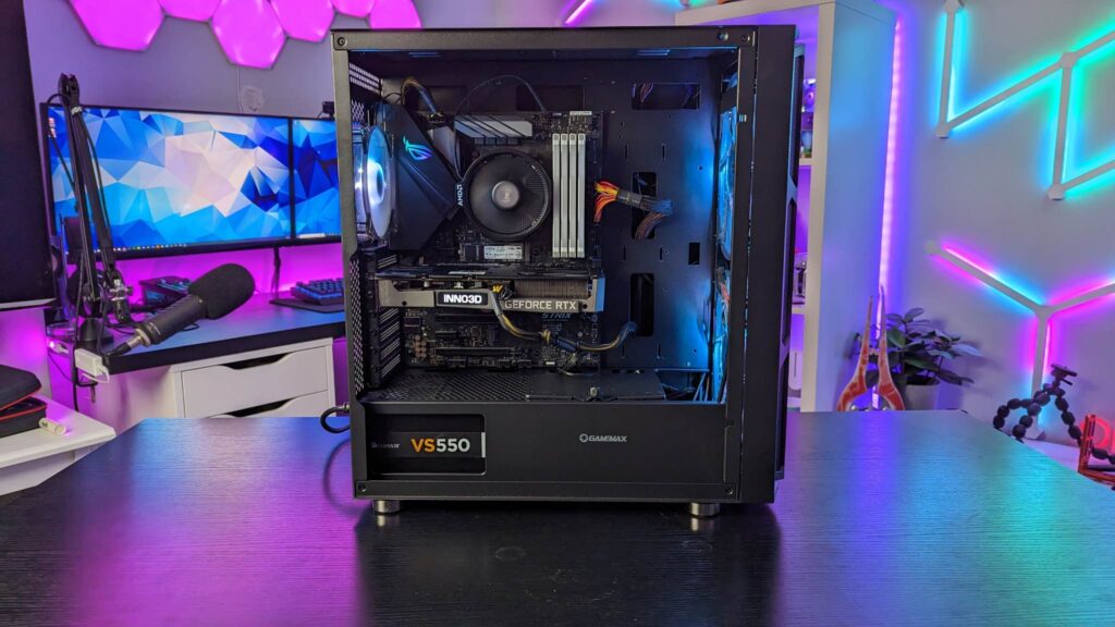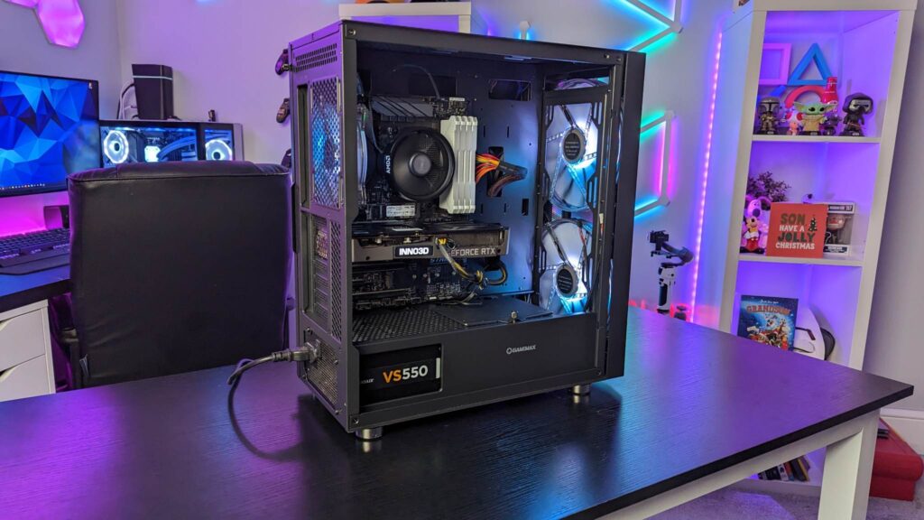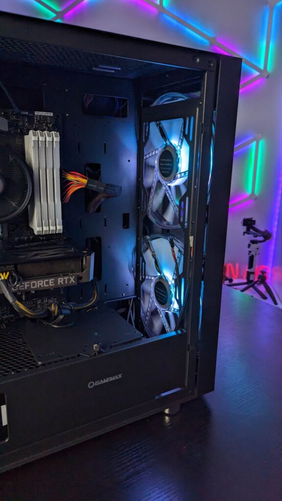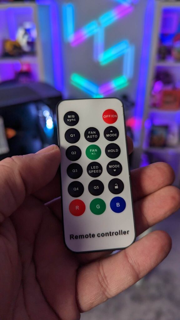 Grab yourself a GPU riser cable and you can mount it vertically right out of the box. Gamemax has given you 29mm for the cable management from all those fans and the standard ATX-sized power supply. And of course, you will need every single scrap of space if you end up with nine storage drives. Also inside is an easy-to-use fan hub, already wired and you get that aforementioned remote for the fans’ speeds, modes, and colours.  It is also fitted with a three-pin AURA connector and VDG connector.