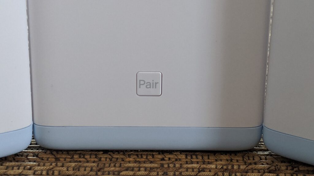 Power up second cube, touch the tiny pair button on the front of your first cube, and then on the second cube, sit back for more many minutes and they will link up together. And then the same for the third and any subsequent Mercusys cubes. It was all rather painless, once you know about the wait times. I was convinced ours was broken, but happened to walk away to do something else, returned a while later, and it was all working. So, once again, and can’t stress this enough, be patient.