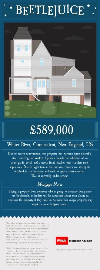 A truly classic movie, the home from Beetlejuice which is situated in Winter River, Connecticut could be sold for £589,000. Although you may want to refrain from saying his name three times, it can be a bit of a pain if Beetlejuice turns up. There is a slight issue though. The previous owners are still very much involved in the property. So bare that in mind if you’re looking to purchase this luxury house. Because of a recent renovation, it’s also considered quite lucrative on the market, so be quick. A deposit will set you back around £58,900.