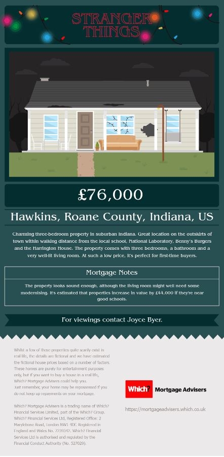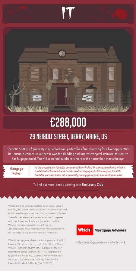 How many of you have like me, binged through the second season of Stranger Things already? I bet a lot of you right? Well if you are a Stranger Things fanatic, or just a Halloween scary movie buff, then I’ve got some juicy content for you. Which? Mortgage Advisers have put together some potential house prices of the homes features in various scary and spooky themed movies and television series.David Blake, Principal Mortgage Adviser at Which? said; “Whether you’re moving home or looking to take your first step on to the property ladder, it is important not to get spooked by property transactions. It is vital to know how much you should be paying and what else you need to budget for. Seeking independent advice from a reputable mortgage adviser can also help you to get the best possible mortgage deal.”