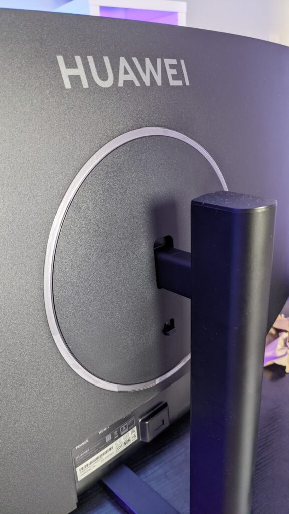 The stand itself though is pretty plain. It has a half-cylinder design, lacks cable management and is mostly made from plastic. The circular plate attaches to the monitor on a clip and feels pretty sturdy and I wasn’t worried about the monitor tipping or breaking. The whole thing is pretty sturdy so no worries giving it a knock and overall it looks quite smart on my desk, though you are going to need a big footprint for it. The MateView GT’s width overall sits at around 82-centimetres. It can be wall-mounted too as it’s got a standard VESA compatibility. The monitor while on the stand can tilt and move up and down, but there’s no panning so you’ll have to angle the whole unit if you want it on a slant.