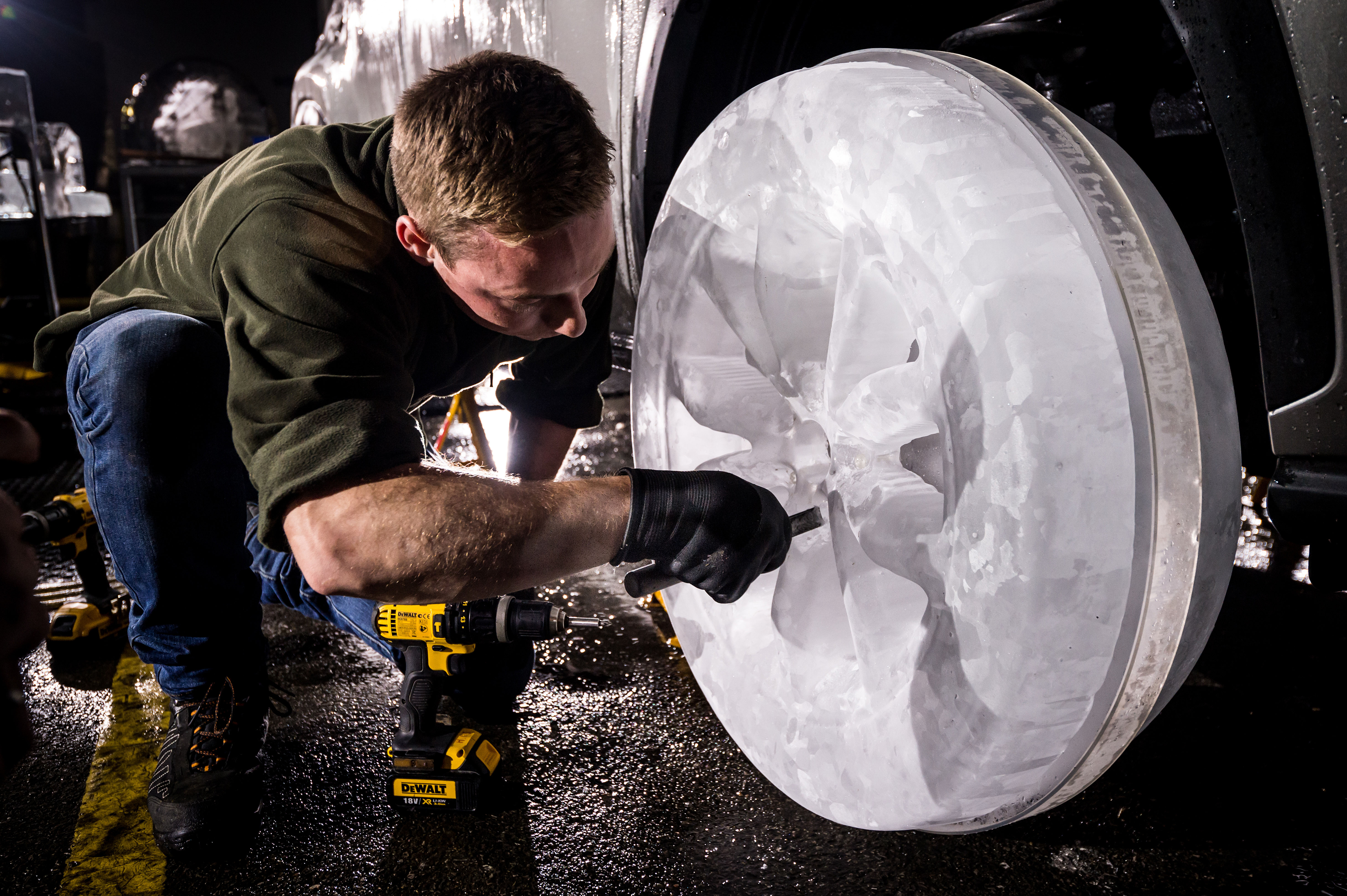 The ice was taken from a moving flow to ensure it looked crystal clear when installed onto the Lexus NX. The LED lights really helped to bring out the clarity of the ice.