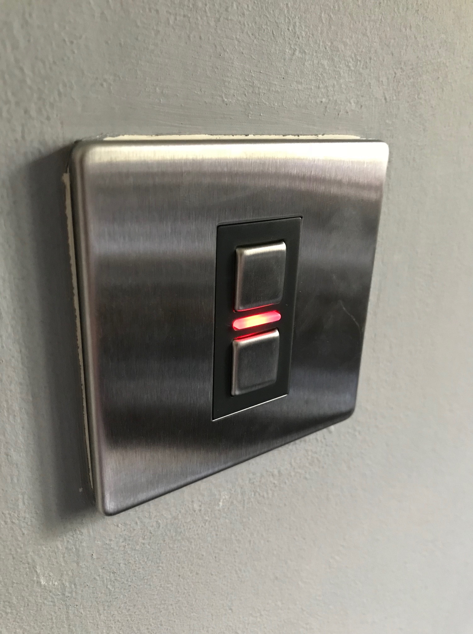 I installed both a switch and socket, along with the hub, into my home to try out. The sockets & switches come in a brushed, gun metal finished, with black inserts, which is the only finish they do at present. They have a neon blue indicator light and sit proud of the wall. For me, this doesn’t fit in with the decor of my house and with only one finish, that’s rather limiting. Gun metal is a popular finish for modern homes and is far more luxurious than white plastic, so should cater to a lot of people.