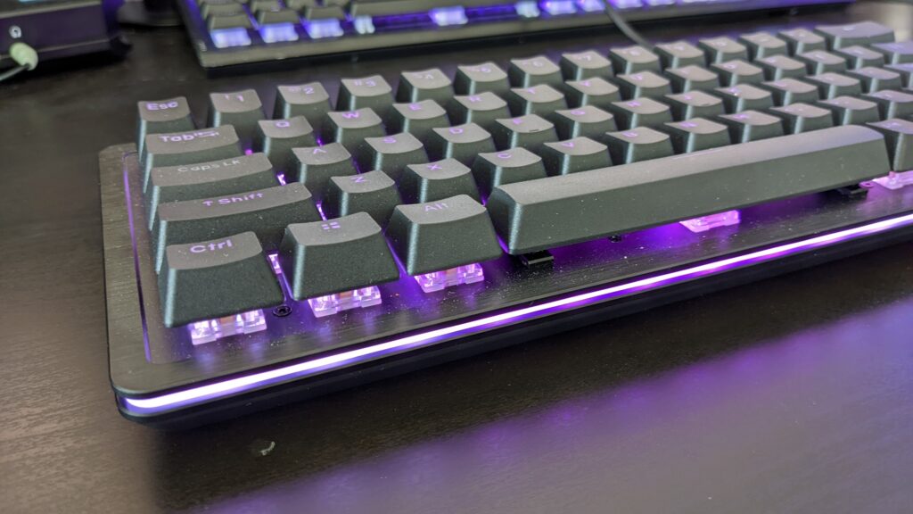 Saying all of this though about how negative I found its work-life experience is, it’s actually one of the best typing experiences I’ve ever had with a gaming keyboard and absolutely shines when playing games where you’re likely stuck to WASD and surrounding keys. Think your typical FPS, battle-royale or RPG games. From the audible clicks the keys make, to the actuation of key presses through to the solid build quality of this keyboard, everything just feels amazing and absolutely premium. There’s no rattle either, that you so often see and feel with gaming keyboards, especially those from more well known and frontline manufacturers and their space bar keys. The Everest 60 has a chunky base layer of silicon, and there are also two layers of foam, all of which helps with the dampening of the key presses. Just take a listen to this.