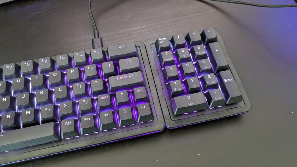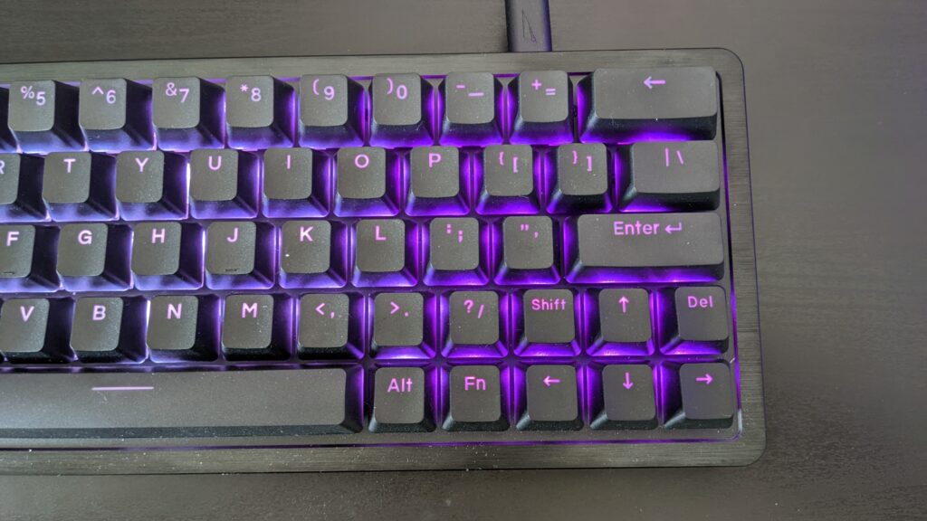 I must say their positioning is quite awkward, especially if you’re touch typing. It’s also missing insert, home, and page up and down keys, and they’re something I use quite a lot when working. It’s also missing a set of F keys which could be problematic if you’re someone who plays MMORPGs, some MOBAs rely on F keys too to fire off spells and talents. You can use the FN key and click a corresponding number, FN + 1 is your F1 key for example, but it’s not exactly ideal if you’re needing to fire off actions quickly.