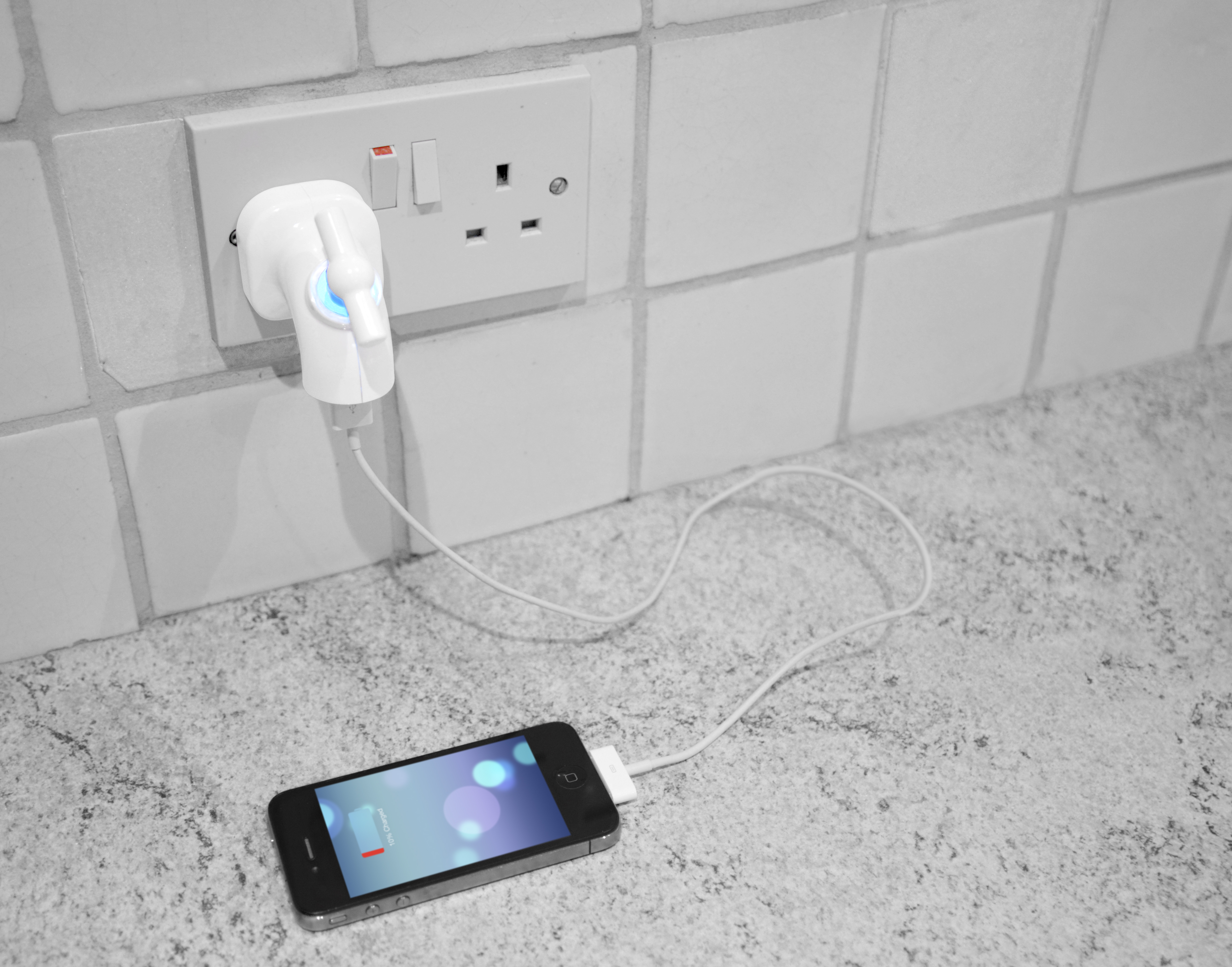 Stock chargers that ship with mobile phones and tablets we can admit are just plain boring. There is nothing worse than using a plain white rectangular box with a USB port to charge our devices. Introducing the new Power Tap Charger, a product that’s shaped, well you guessed it, like a tap.