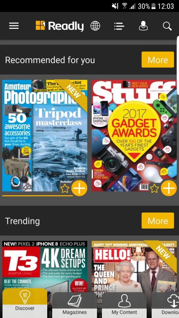 Once you’ve subscribed, you’ve got unlimited access to all of these magazines. Favourite them to keep the most up to date magazine in your library. You can set the amount of magazines within a series you can favourite. By default this is 30. So for me for example, if I fill my favourites up with 30 T3 and Stuff magazines, if I favourite another one, it will then remove the oldest one favourited. Saves your phone’s storage space from running out completely.