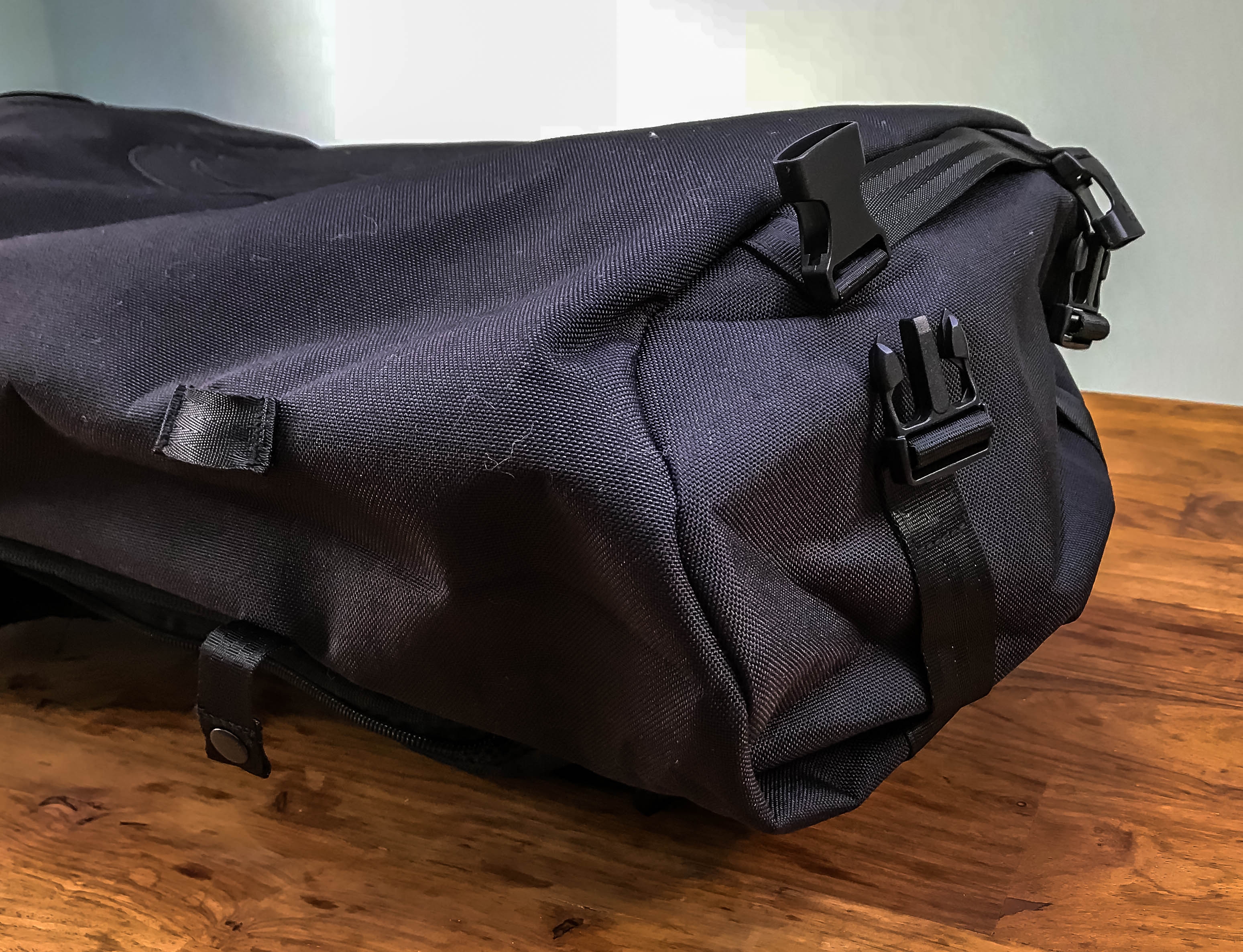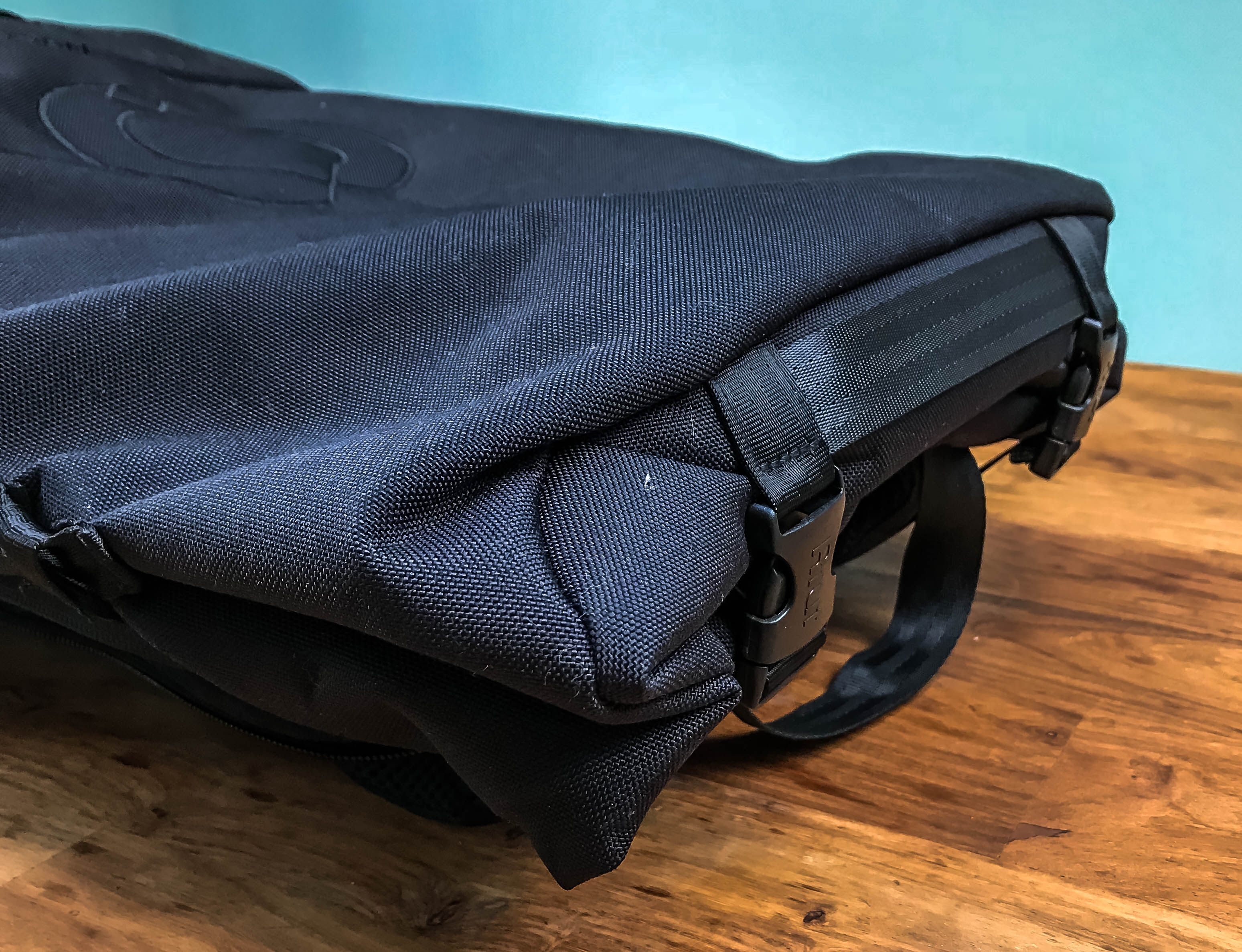 The X25’s newest feature is that it is expandable, with RiutBag saying its two backpacks in one. By un-clipping the two clips at the top of the bag, it opens up some extra space, which allows you to add more contents into the main compartment. This is a very simple idea but a very handy one! Say for example you go away on a city break for a couple of days, expand the bag, fill it with clothes, empty said clothes when you arrive and then clip away the top section of the bag for a more compact day to day bag. When compacted, there is still a lot of space and you can still store your laptop in their too. It’s very easy to expand the bag, its just two clips (& two poppers) and the bags been designed in such a way, that when you fold it back, it creates a neat crease either side of the bag.