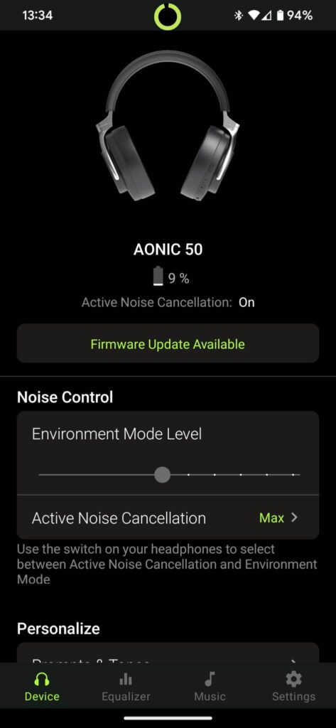 When it comes to audio quality, the Shure Aonic 50s are literally top-tier. I mean for someone who likes their tech, but may not shuffle into the audiophile realm, these headphones are absolutely stunning. Before talking about music though, I want to mention both the audio passthrough and noise cancellation technology. The passthrough I will say works great. It’s almost like the microphone amplifies sound coming from your surroundings, making it super clear to hear. Though this mode does sacrifice some volume though audio quality does remain. Of course in the app you can change the sensitivity of audio passthrough, and I kept mine at around three-quarters, which offered a nice balance of music and audio from my surroundings. Perfect for an office environment. The noise cancellation works extremely well though, and I was surprised at how close to the Bose Quiet Comfort headphones the Aonic 50s were in this regard, because of course we all know Bose are the market leaders here. This is also the mode I would recommend listening to your music in, as the punchiness of the music really shines through. There are two levels here, Normal and Max, with the Max setting giving you that vacuum effect, which is best if you’re on a plane or train, but also introduces a very faint hiss, as well as a hindrance to your actual audio quality, as if all of a sudden your music has to sound more compressed because of the noise cancelling effect. The Normal setting though fared so much better, and for everyday use, walking through town or in an office environment is fine.
