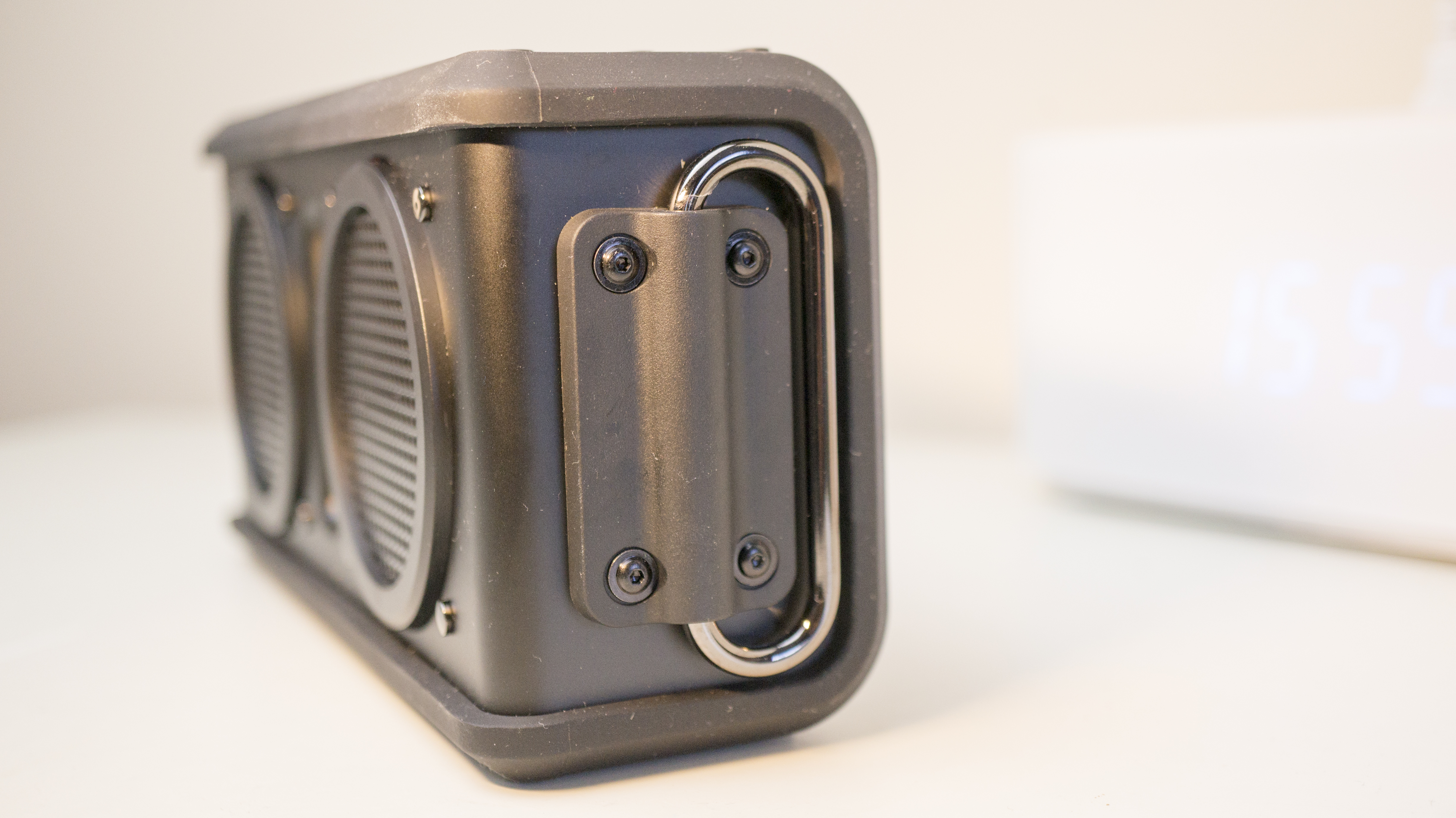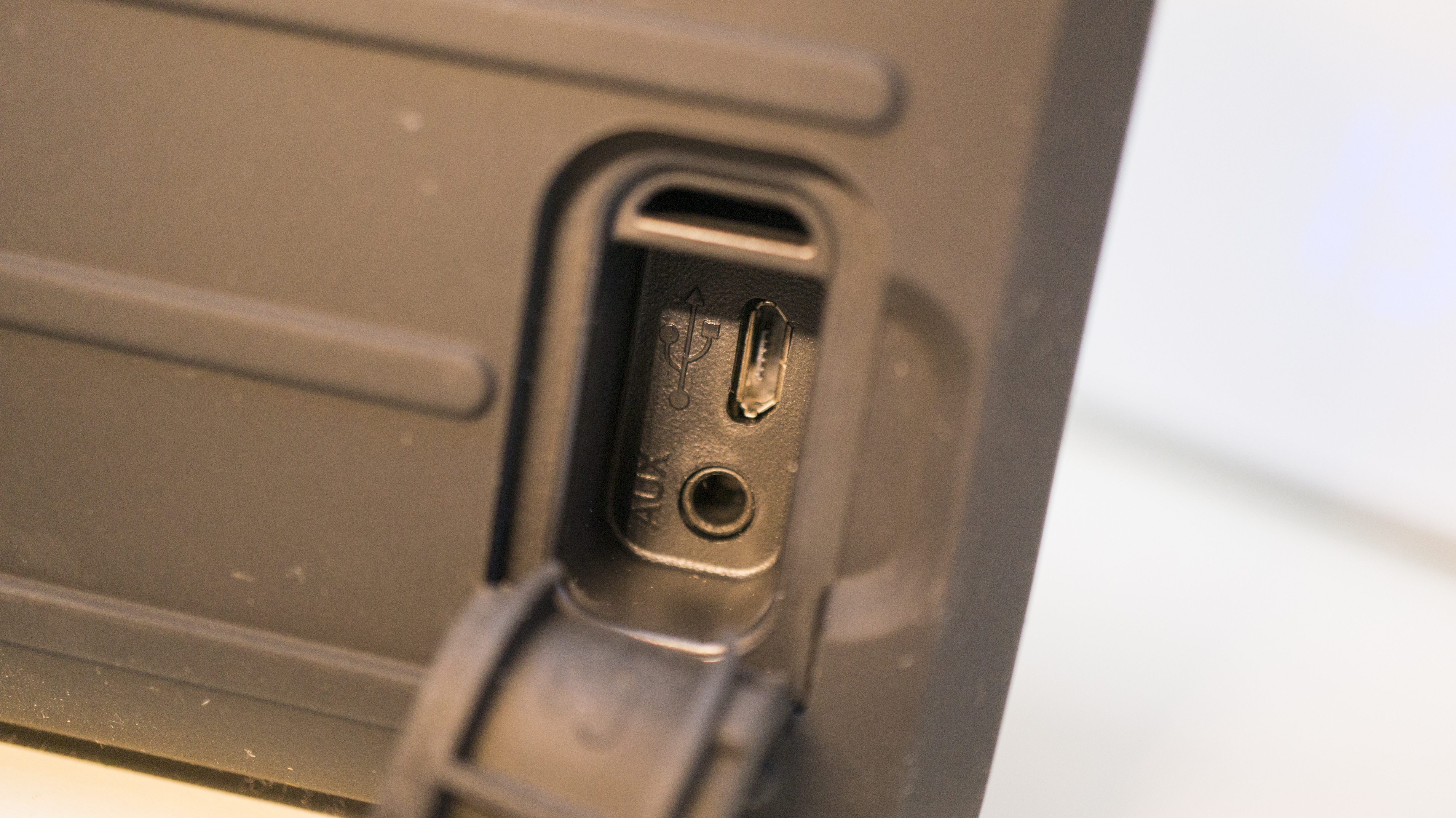 There are only a couple of inputs on the rear of the speaker. The first is a microUSB charging port with a cable included. Charge time takes a few hours, and we managed to get around 11 hours out of our speaker at a mid volume. High volumes mean less battery life. In our case me managed to get between four and six hours through testing. The second port is a 3.5mm aux input for those of you who prefer a hard-wired connection or if Bluetooth just isn’t available on your music device.