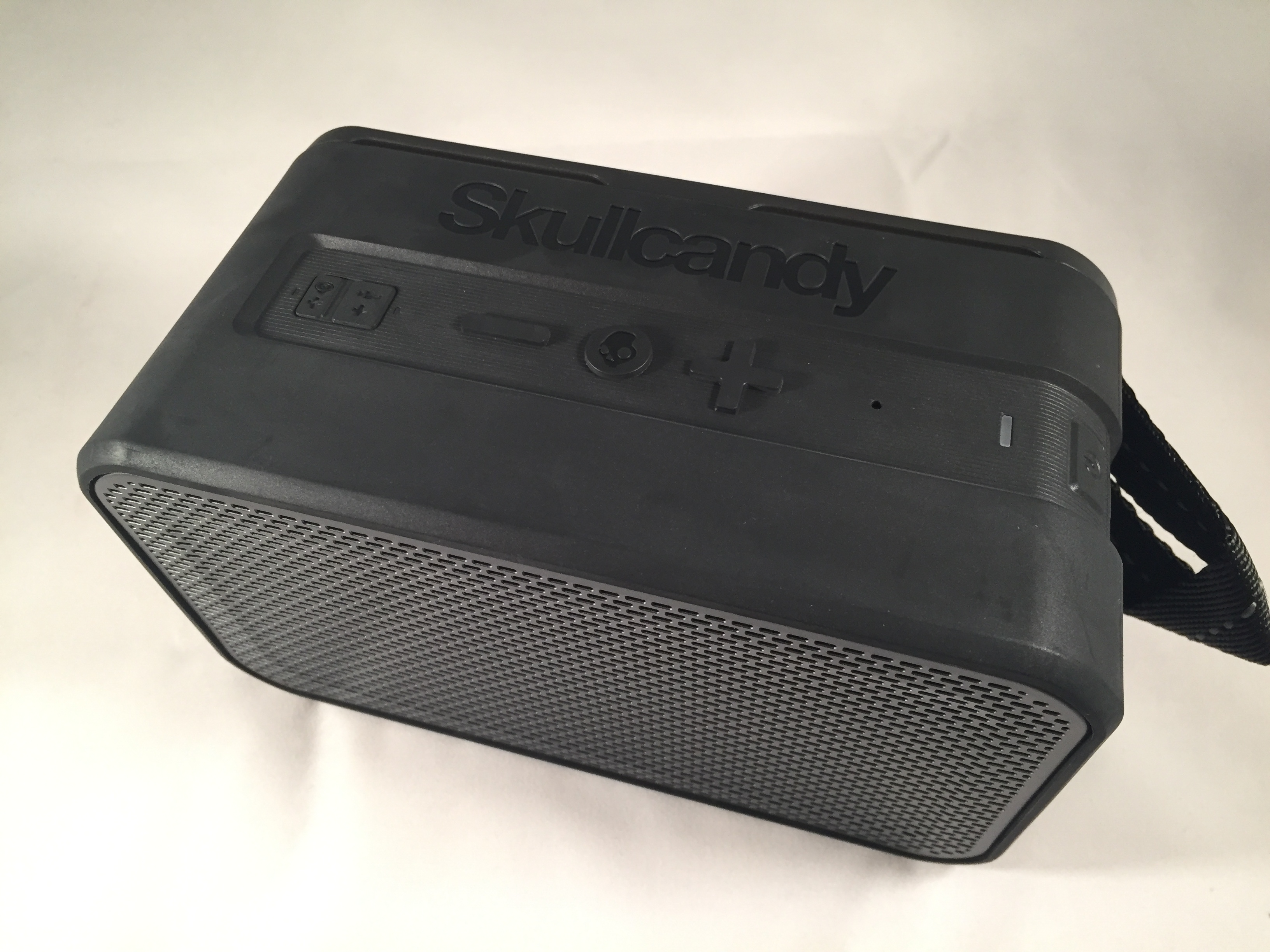 Take the speaker out of the box and it looks and feels a little chunky but I guess it has to, if its to withstand the outdoors. This is also the largest model Skullcandy have on offer, so if size is a real concern, one of the smaller options may be better for you. I wouldn’t class this as a large speaker though, its still very portable in my opinion. It has a very rugged, thick, rubbery plastic exterior, all the way round the speaker, apart from the front, which has a beautiful stainless steel grill. The buttons to control the speaker are located on top and are traditional ‘push’ to use buttons. Buttons include on/off, play/pause, volume up/down, change track, plus connection buttons. To the side of the speaker, is a rubber flap and underneath it is aux in/out ports for playback through multiple speakers, micro USB for charging and normal USB ports for external device charge.