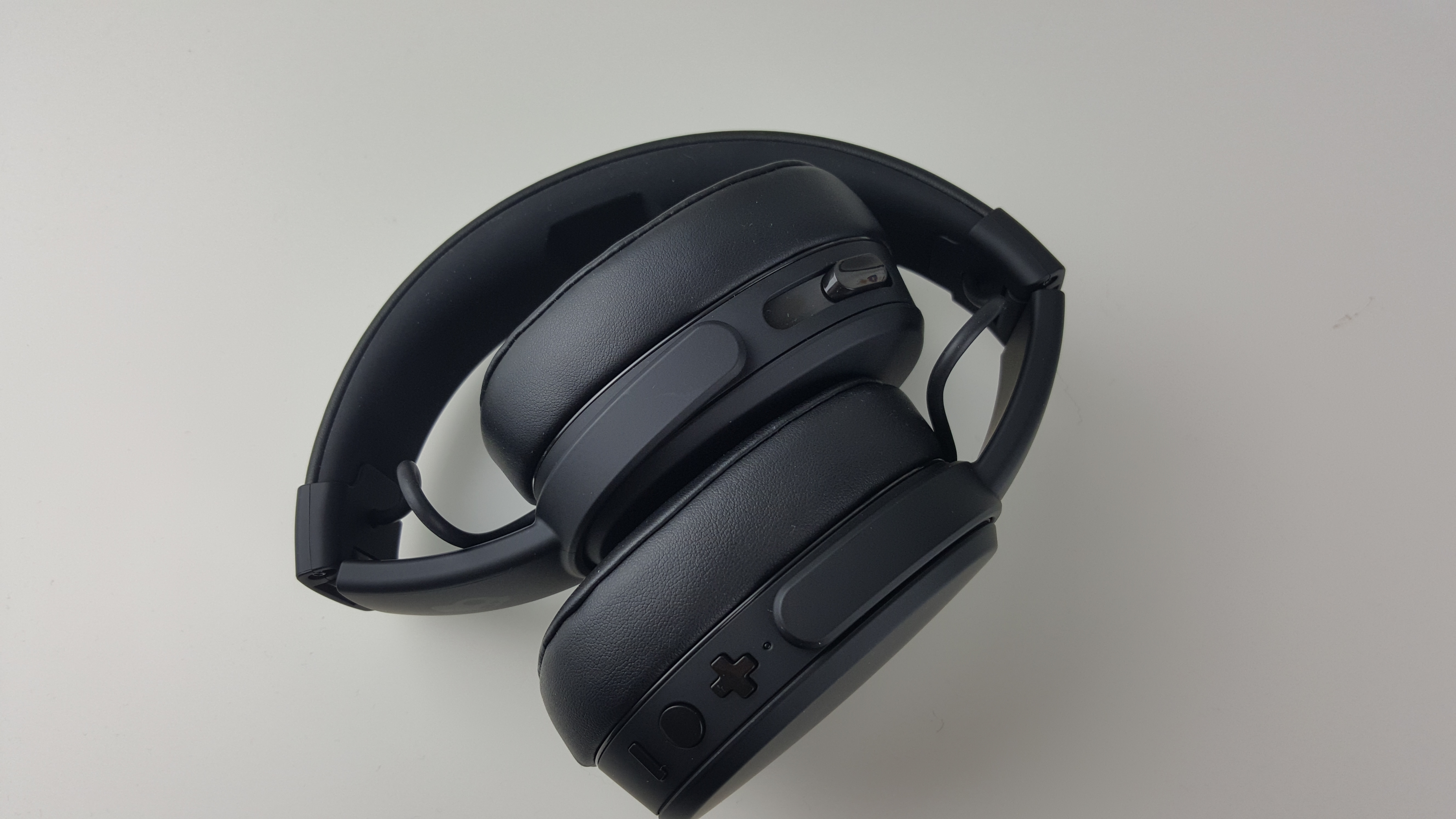 On the right side you will see some enlarged playful buttons to control the Bluetooth connection as well as volume up and down, which double up as a skip track option. They’re nice and big, making it easier to feel for them while the headphones are on your head, and is something that I myself really like about the design of the Skullcandy Crusher Wireless headphones. The entire set is covered in a soft plastic, with the headband being coated in a thin layer of foam. Not the best we’ve seen in a set of headphones, but it’s still comfortable for longer periods of listening time. The band itself inside is metal for added durability. There are two exposed cables which I can see getting damaged after owning them for a long while by throwing them in your bag and such, but they’re here to compensate for the extra length they need then in the folded position.