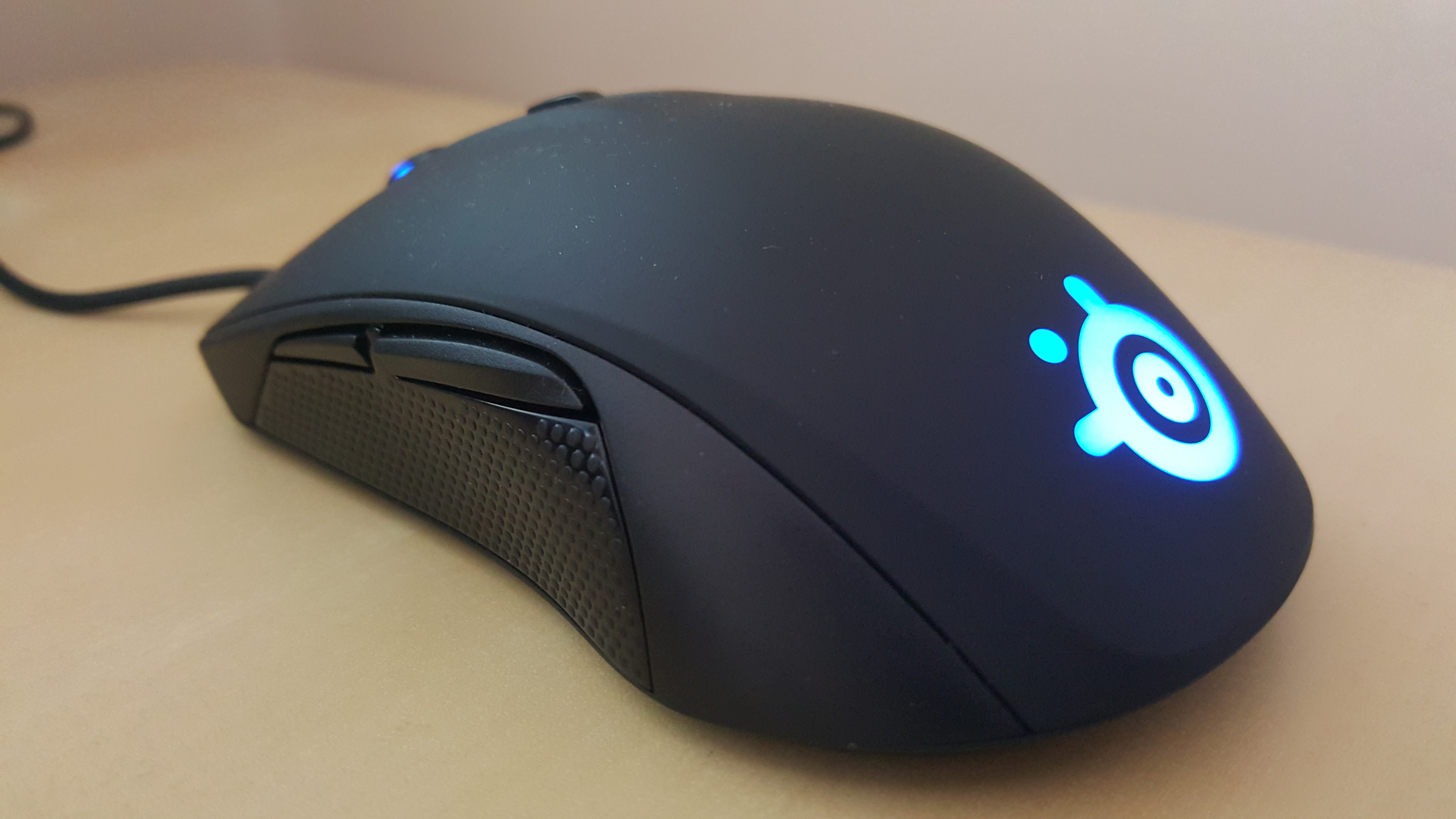 The USB cable isn’t braided like you’ll find on other gaming devices, but that to me seems like a smart move to keep the cost down. The LED lights inside make the Steelseries logo shine as well as the scroll wheel. The colours can be changed inside the Steelseries Engine 3 driver software.