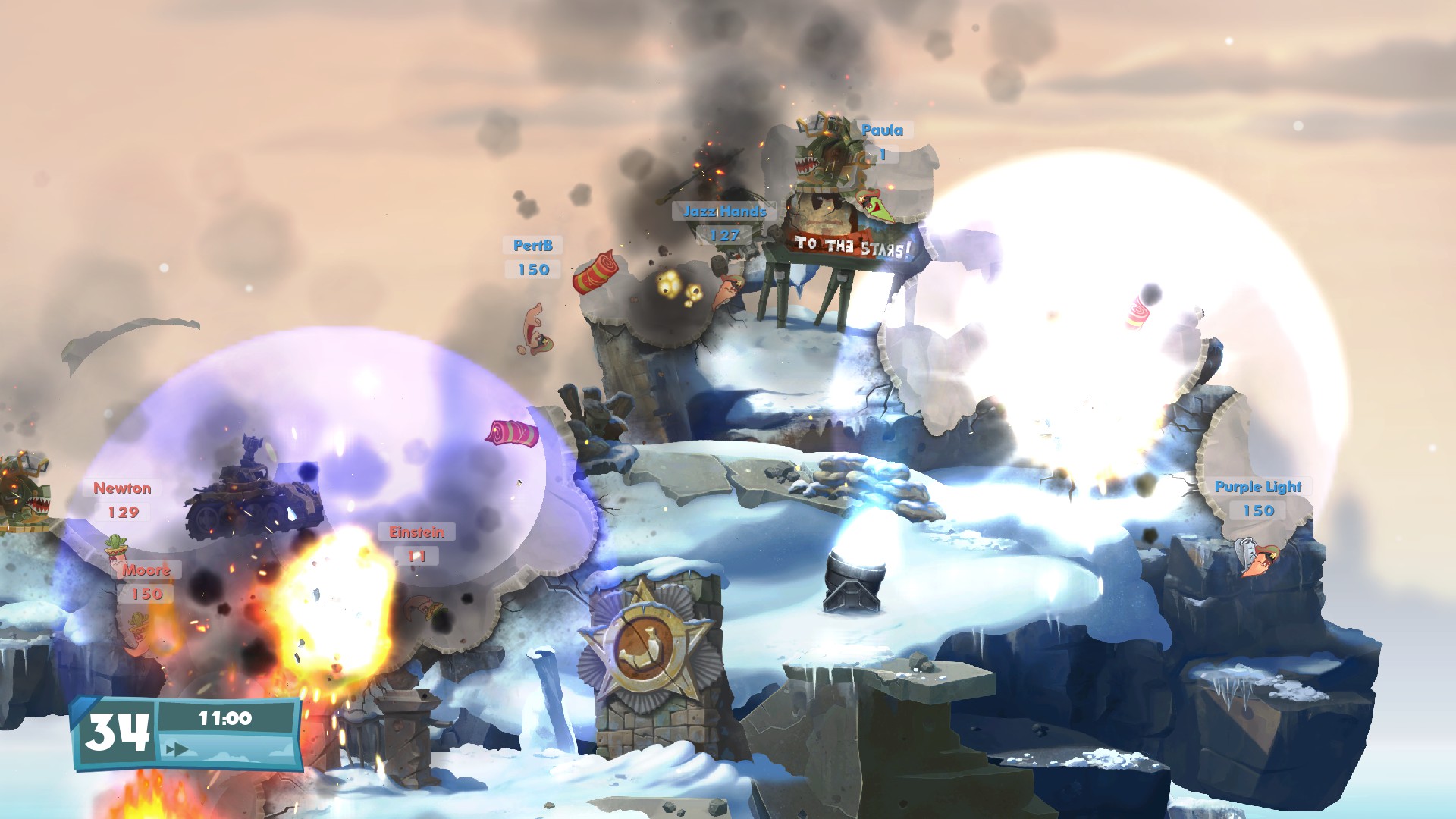 During this 60 seconds you get the chance to fire off weapons, and by weapons I mean hilarious unrealistic weapons at the enemy worms. Most of the time though you will find you’ve misplaced your reticule or misfired your bazooka ending in destruction to yourself. But that’s the hilarity of it.